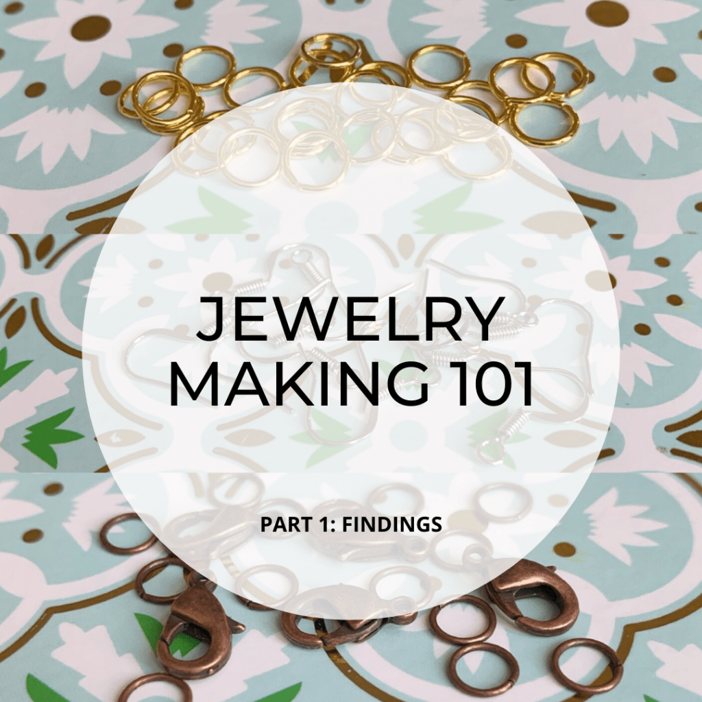 ‘Findings’ is one of those ‘industry terms’ that I had never heard of before, so I thought it would be helpful to give a little overview for others like me. In a nutshell, ‘findings’ is an umbrella term for all the little ‘connector’ pieces that you need to make a complete piece of jewelry. It’s a broad term that covers several items that are used for different purposes, so I’ll share some examples here.