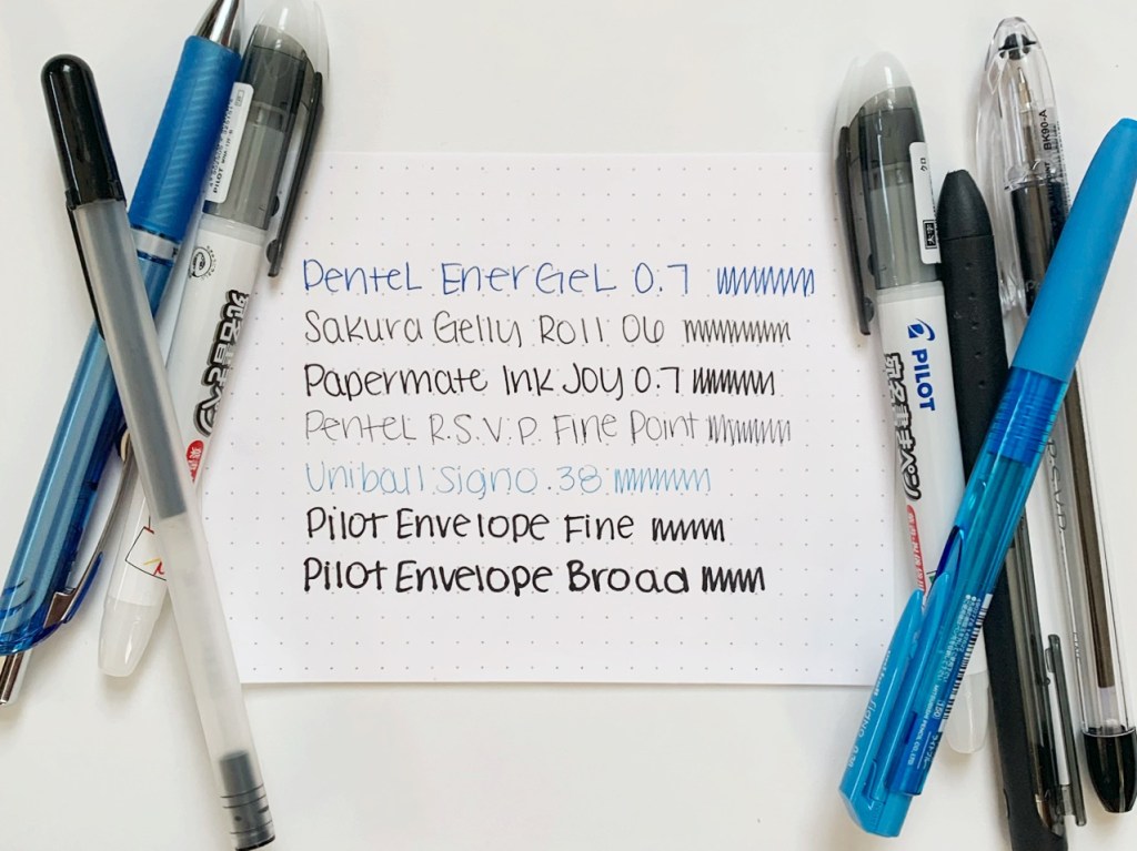 PaperMate InkJoy 0.7 This one is likely on just about everyone’s list of favorite gel pens, and for good reason! The ink is thick and smooth, without bleeding through paper – it’s a very ‘gel-like’ gel pen if that makes sense. This pen is also excellent for writing on glossy planner stickers.