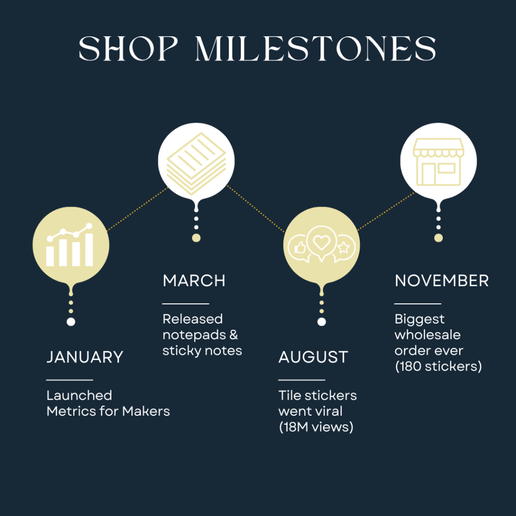 This truly came out of nowhere and was really interesting to experience. It may warrant its own blog post. I literally came up with the video idea randomly, threw it together using existing video footage (THE BEST when I already have the footage I need), and uploaded it not expecting anything. 18 million views later, and it’s still going. I surpassed 10k Instagram followers because of it, my shop visits skyrocketed in September, and I did see an increase in sales, especially of the tiles. But I was surprised to find that it wasn’t a life-changing amount of orders. I feel like when small businesses go viral and they talk about it on TikTok, it always seems like that one viral video was their ticket to success. Don’t get me wrong at all – I am extremely grateful for the sales I received. And tbh, I’m thrilled that a video that actually featured my products went viral, since I feel like that can be a feat in itself!